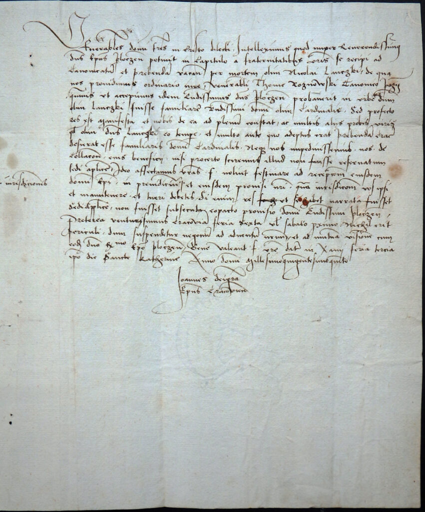 Empfehlungsschreiben des Bischofs Jan Konarski zur Stellenbesetzung des Kraukauer Domkapitulars durch Thomas Roznowski