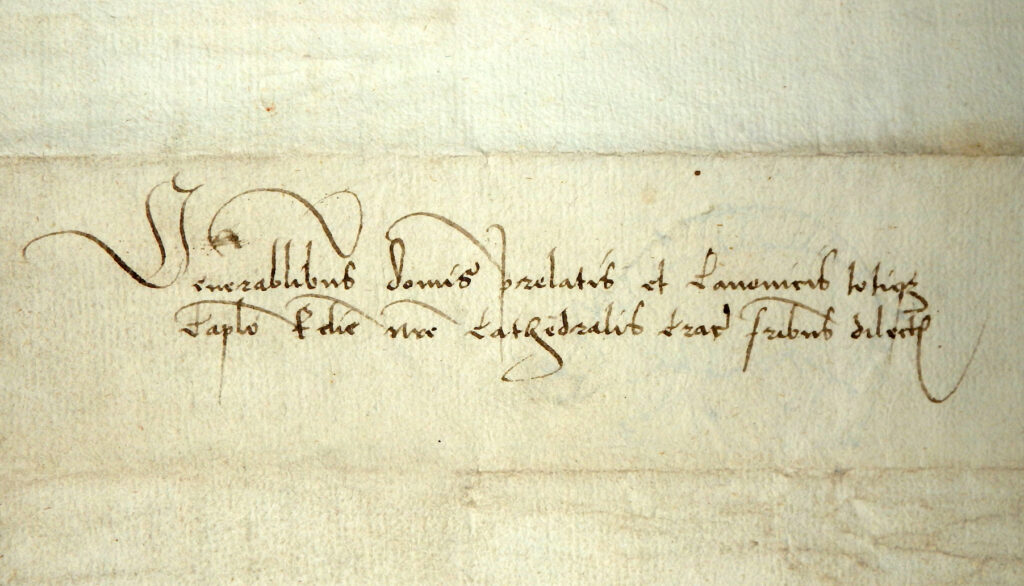 Handschriftlicher Brief im Namen des Bischofs mit Siegelresten. In lateinischer Sprache verfasste Handschrift auf Papier. Eine halbe beschriebene Seite auf einem Blatt.