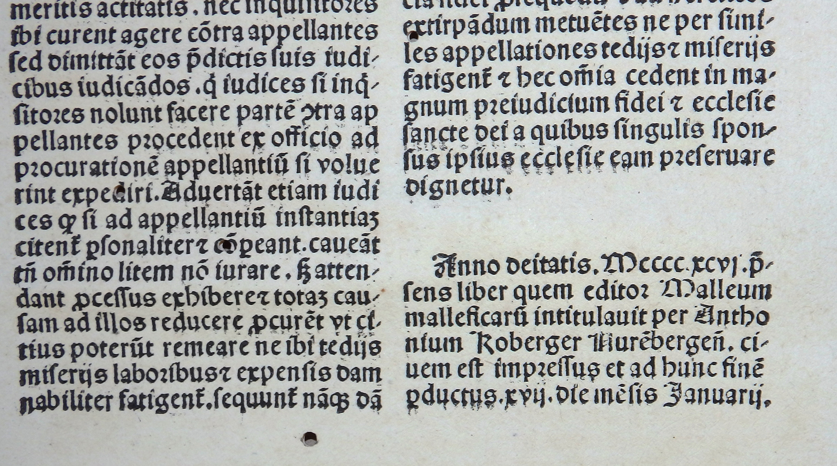 Äußerst seltenes Exemplar einer Inkunabelausgabe des berühmt-berüchtigten „Malleus Maleficarum“, des sogenannten „Hexenhammers“, gedruckt in der berühmten Nürnberger Offizin von Anton Koberger. Das Werk wurde erstmalig 1486 bei Peter Drach in Speyer in Druck gegeben und stammt aus den Federn der beiden Dominikanermönche Heinrich Kramer, latinisiert zu Henricus Institoris und Jakob Sprenger, dessen Mitautorschaft heute infrage gestellt wird, obgleich das Werk traditionell eher unter des letzteren Namen geführt wird. Sprenger bekleidete die Position des Inquisitors in den Erzbistümern Mainz, Trier und Köln und ab 1484 auch in den Erzbistümern Salzburg und Bremen, was zumindest seinen großen Einfluss auf den Hexenhammer belegt.