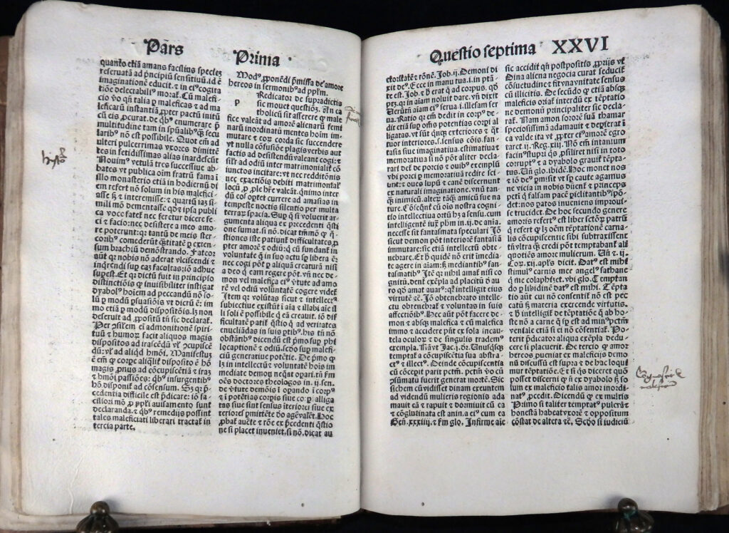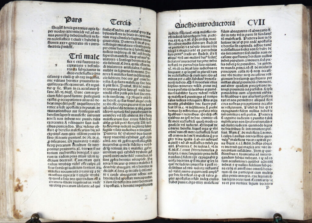 Der „Hexenhammer“ (Malleus maleficarum) des Dominikaners Heinrich Kramer zählt zu den berüchtigtsten Schriften der europäischen Geistes- und Rechtsgeschichte. Als systematische Abhandlung über das vermeintliche Wirken von Hexen verband das Werk theologische Argumentation mit juristischer Praxis und entwickelte sich rasch zu einem maßgeblichen Leitfaden für kirchliche und weltliche Strafverfolgung. Über Jahrzehnte prägte es Denken und Handeln von Richtern und trug entscheidend zur Legitimation der Hexenverfolgungen des 15. und 16. Jahrhunderts bei. Erstmals erschien der „Hexenhammer“ 1486 im Druck des Peter Drach in Speyer; die hier vorliegende Ausgabe wurde am 17. Januar 1496 von Anton Koberger in Nürnberg herausgegeben.