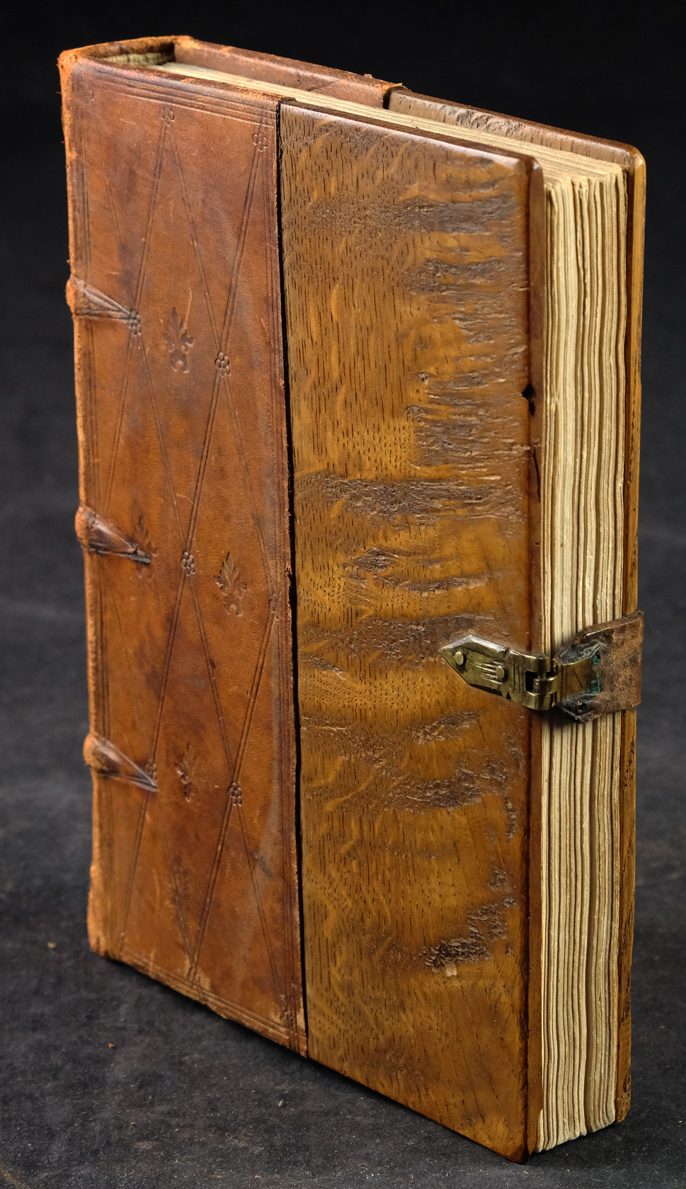 Attraktiver Holzdeckeleinband im Stil der Zeit. Rücken und die Hälfte der Deckel mit blindgeprägtem Lederrücken und goldgeprägtem Rückenschild und Messingschließe. Gebunden auf drei echten Bünden. Guter Zustand. Buchblock und Bindung fest und stabil. Leder partiell berieben. Gelenke beschabt.