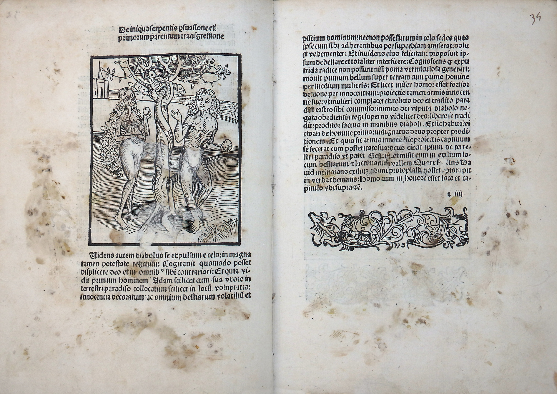 Einspaltige gotische Type mit bis zu 37 Zeilen. Ein Titelholzschnitt und 60 große Textholzschnitte vom Haintz-Narr-Meister (davon fünf wiederholt).