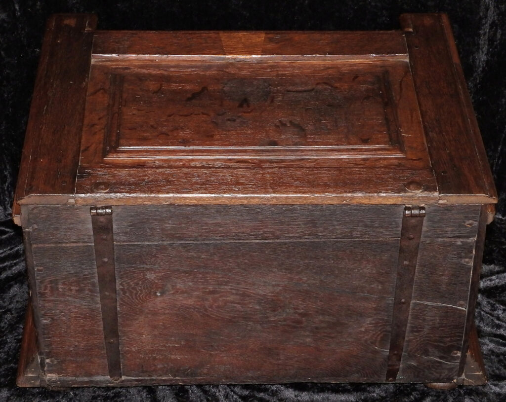 Hiermit wird die einwandfreie Herkunft dieser Truhe bestätigt. Diese ist zum Zeitpunkt des Verkaufs frei von Rechten Dritter.