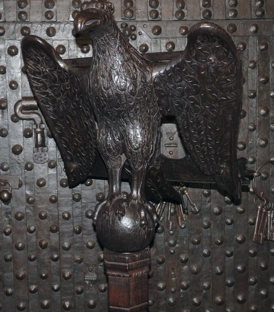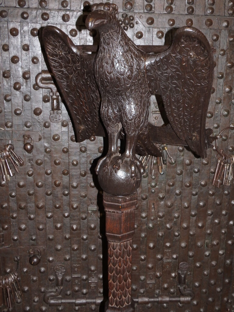 Unser Exemplar ähnelt dem Exemplar, welches im Naumburger Dom steht. Es wirkt wie ein mitteldeutsches, spätgotisches/ frührenaissancezeitliches Adlerpult – typologisch nah an dem, was man in Saale-/Elbe-Raum (Naumburg, Thüringen, Sachsen-Anhalt) um ca. 1480-1520 findet.