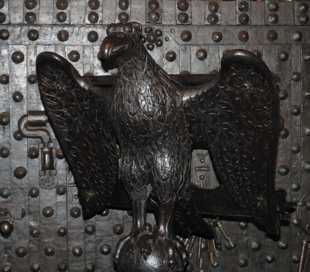 Dieses monumentale Uhrwerk des 17. Jahrhunderts ist mehr als ein Mechanismus aus Eisen und Zahnrad – es ist ein Sinnbild menschlicher Kunst und Vergänglichkeit. In vollendeter Präzision schlägt es die Stunden, ordnet den Tag und erhebt den Blick zum Ewigen. Doch jeder Schlag ruft auch ins Gedächtnis: Wie das Räderwerk unaufhaltsam kreist, so rinnt auch das Leben dahin – ein klingendes Memento mori im Takt der Jahrhunderte.