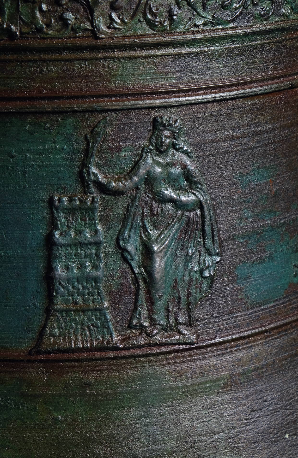 Die Glocke ohne Klöppel. Sehr gute Gussqualität und bemerkenswerter Erhaltungszustand mit schöner, natürlich nuancierter Patina.