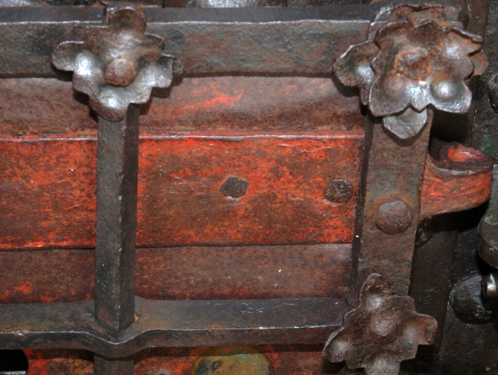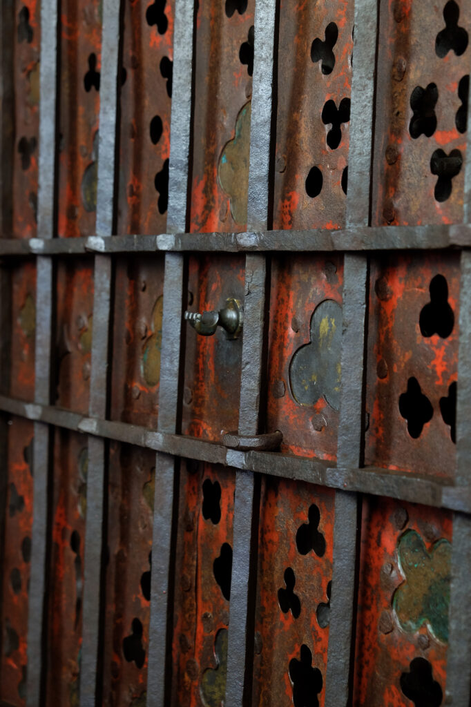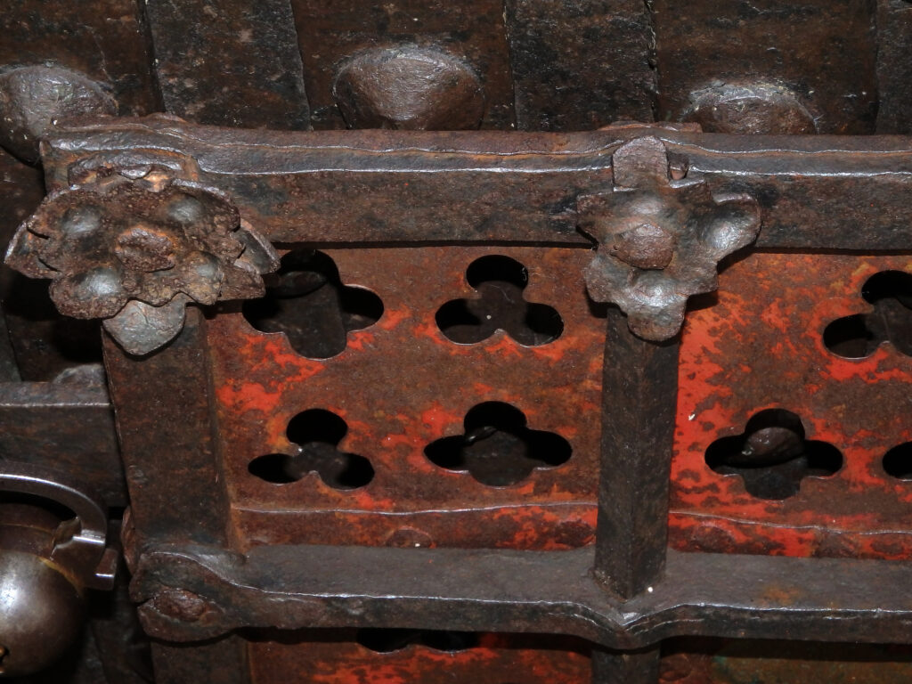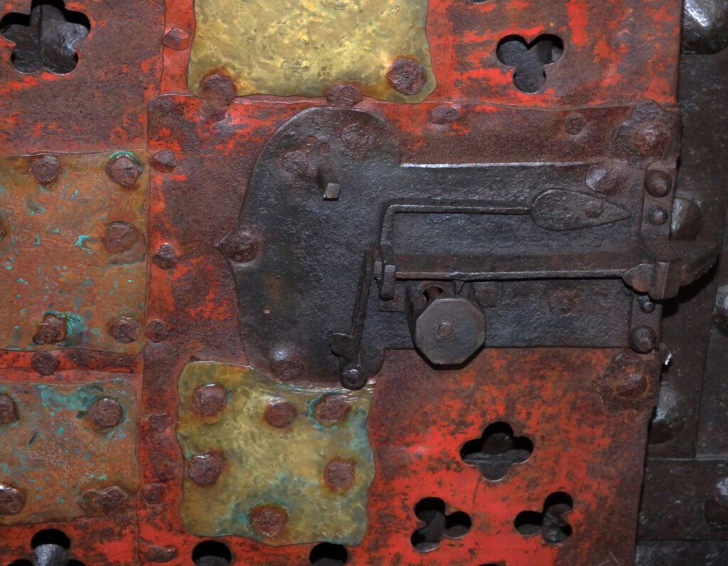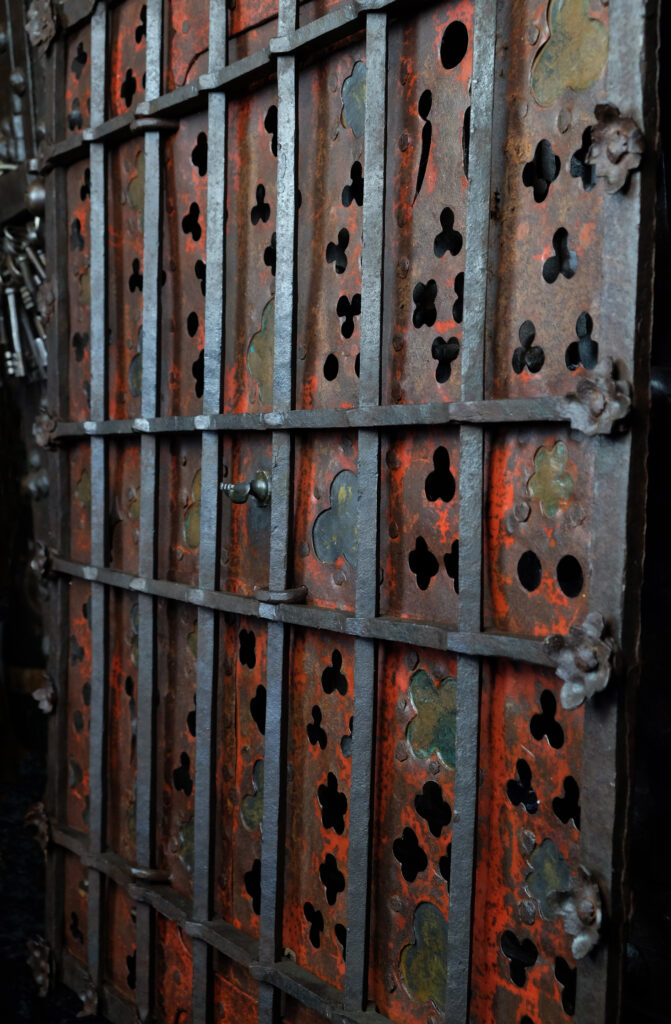 So wird die Tür selbst zum liturgischen Zeichen – ein kunstvoll gefügtes Wächterobjekt, das die Kostbarkeit des Verborgenen ankündigt und zugleich die hohe Kultur spätmittelalterlicher Schmiedearbeit eindrucksvoll vor Augen führt.