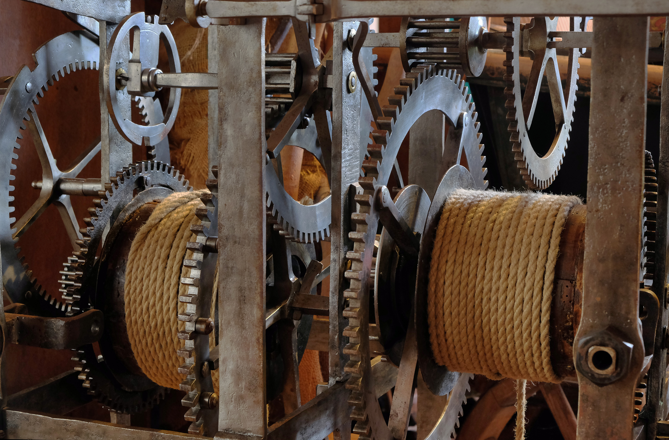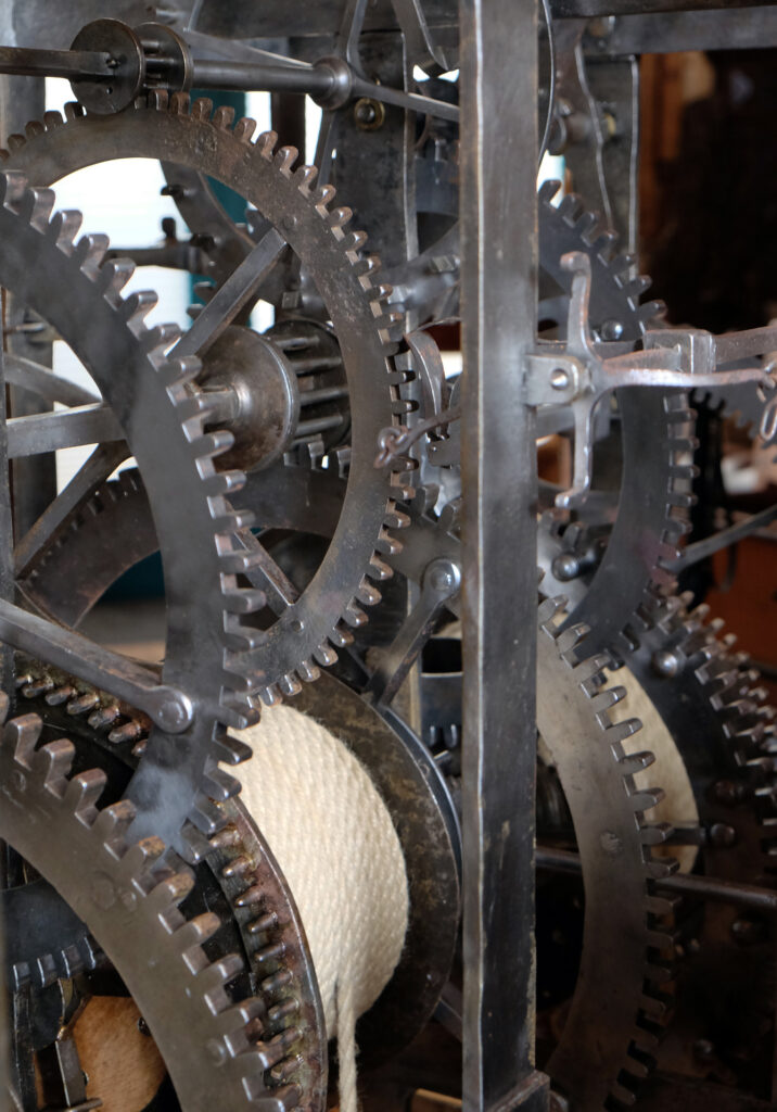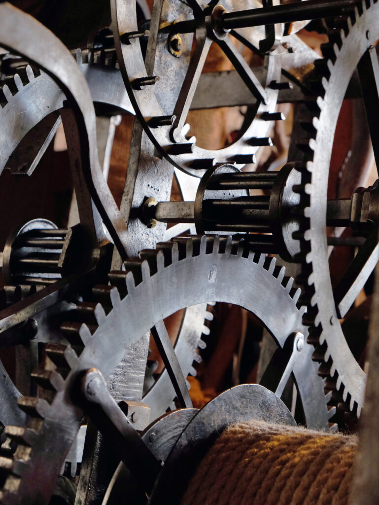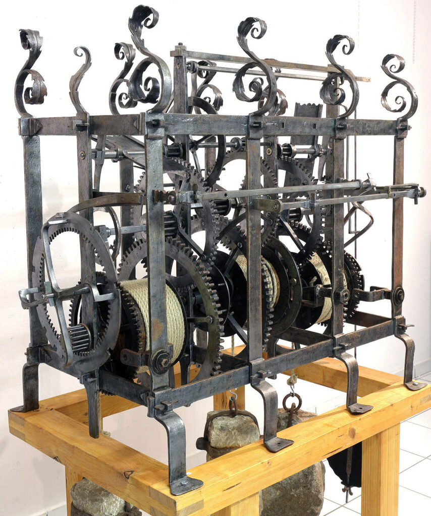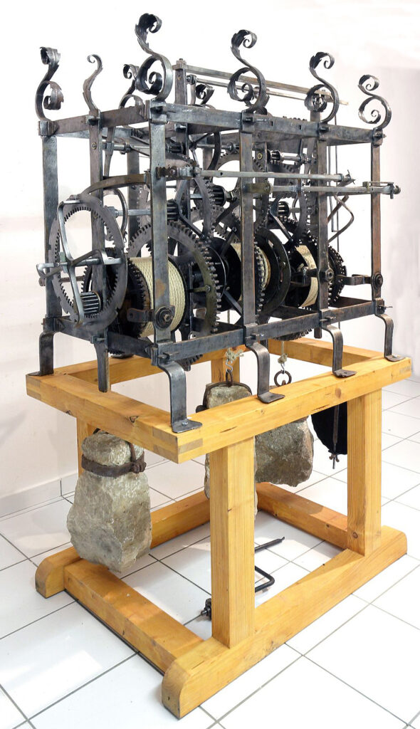 Vor uns steht ein monumentales Uhrwerk aus dem 17. Jahrhundert: eine Maschine aus Eisen und Bronze, geschaffen, um Zeit nicht nur zu messen, sondern sie sichtbar und hörbar in den Alltag einer ganzen Gemeinde einzuschreiben. Zahnräder greifen ineinander wie in einem Tanz, schwere Gewichte treiben die Bewegung an, Pendel und Hemmung zwingen die Mechanik zu höchster Präzision.