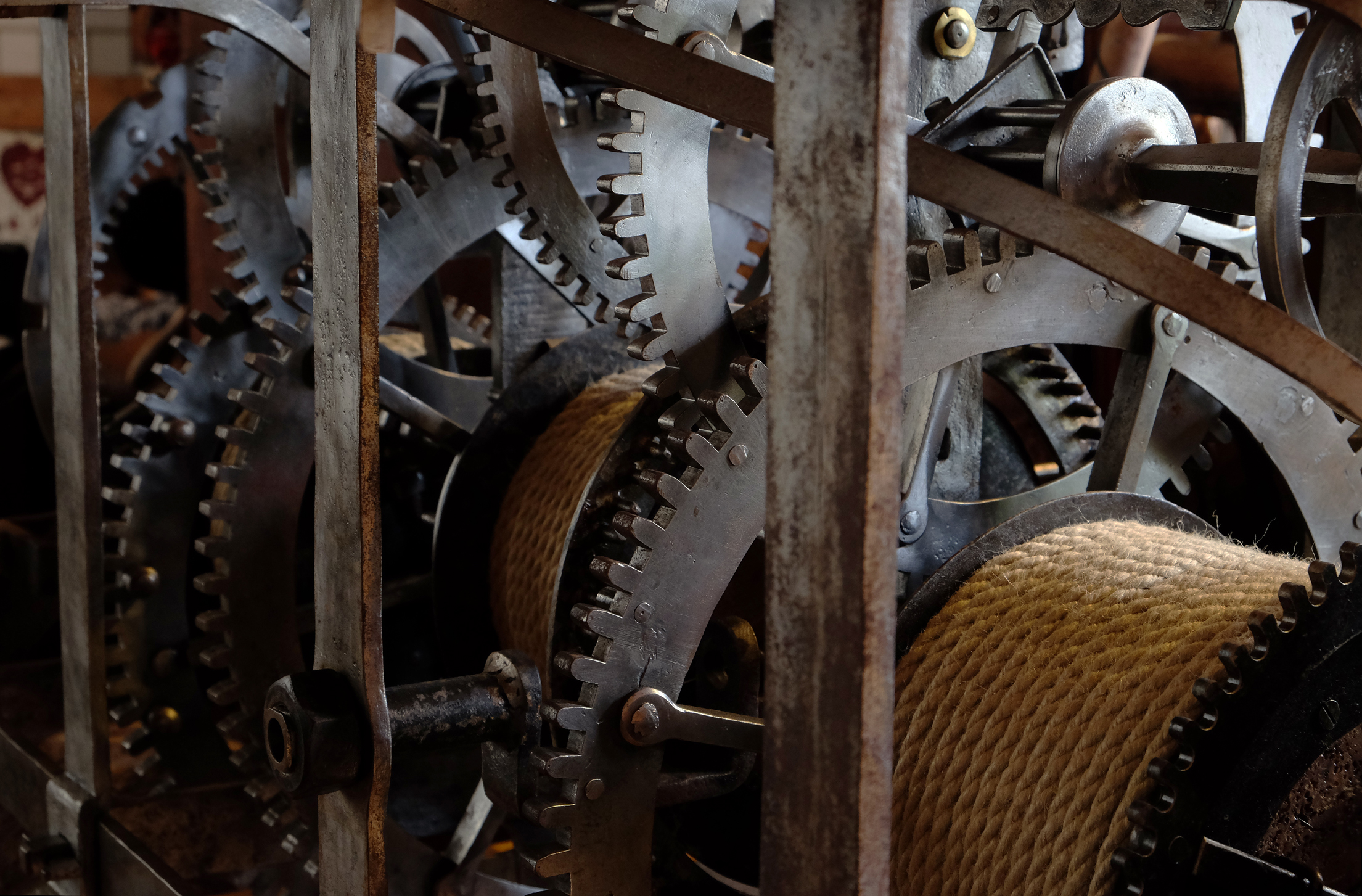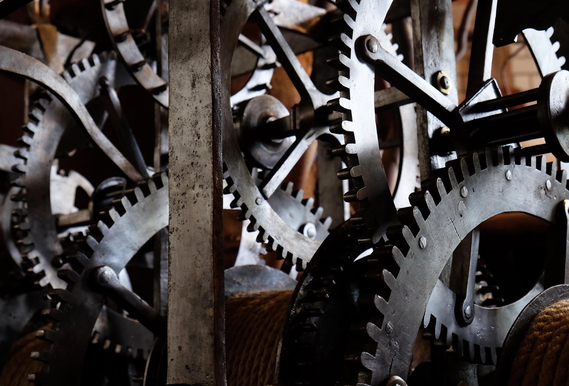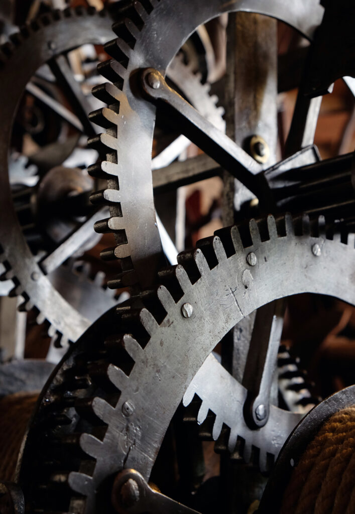 Vor uns steht ein monumentales Uhrwerk aus dem 17. Jahrhundert: eine Maschine aus Eisen und Bronze, geschaffen, um Zeit nicht nur zu messen, sondern sie sichtbar und hörbar in den Alltag einer ganzen Gemeinde einzuschreiben. Zahnräder greifen ineinander wie in einem Tanz, schwere Gewichte treiben die Bewegung an, Pendel und Hemmung zwingen die Mechanik zu höchster Präzision.